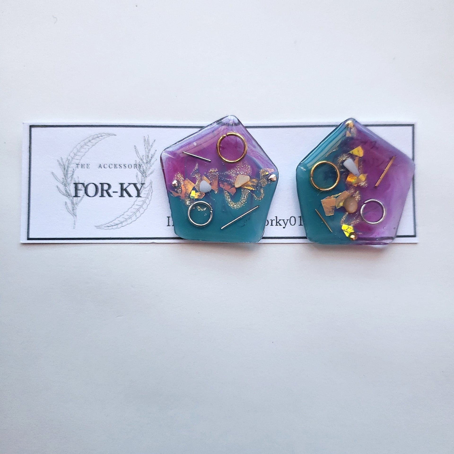 【1点もの】ペンタゴン・スクエアデザイン ピアス / イヤリング