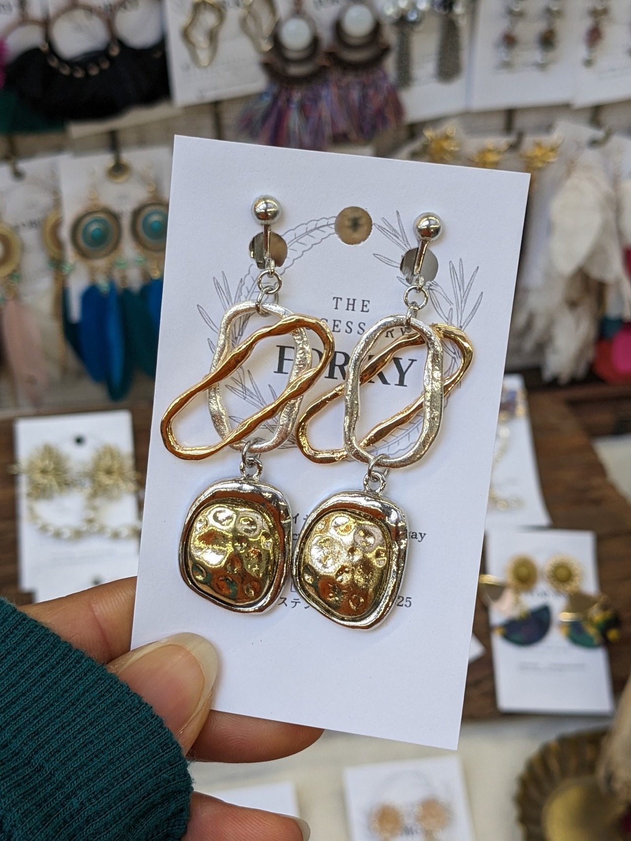 [ イヤリング or ピアス ]silver × gold mixデザイン